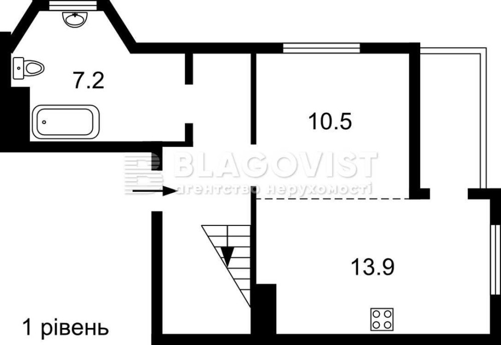 • Площадь кухни 13.9 м2