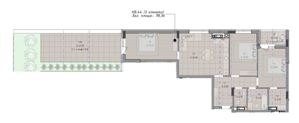 Продаж 3 кім.квартири з терасою від забудовника ЖК Кленовий двір