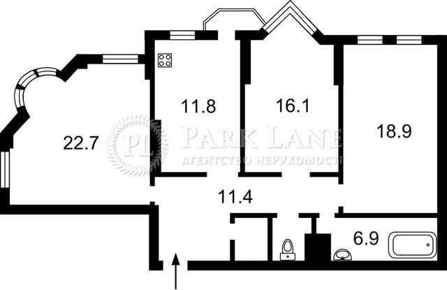 • Площадь кухни 11.8 м2