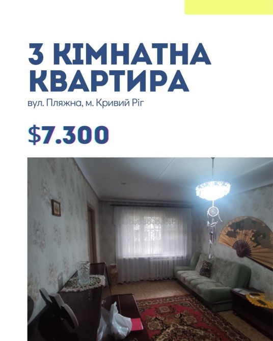 Продається 3-кімнатна квартира в Тернівському районі, вул. Ухтомського, р-н (Пляжна), СЄВГОК (зуп. Короленка)