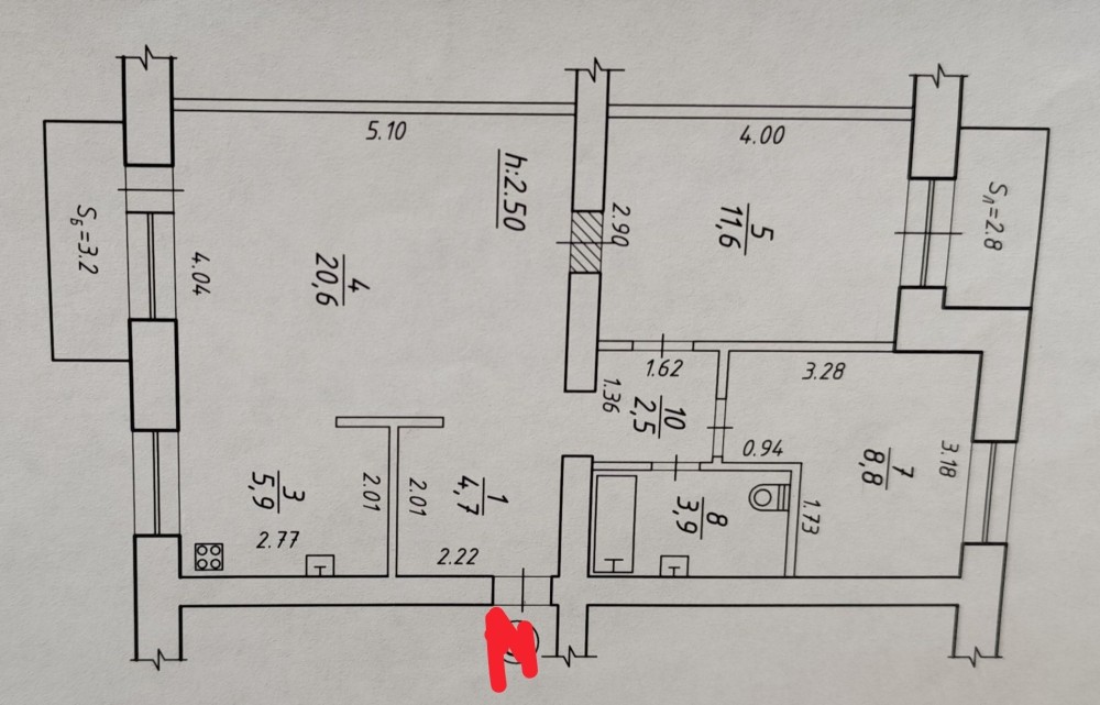 • Площадь кухни 6 м2