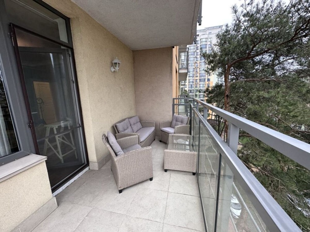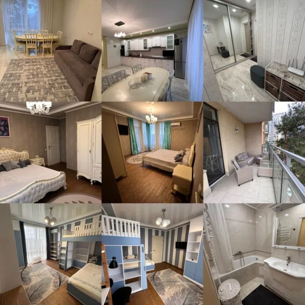 Простора квартира з євроремонтом, великою кухнею-вітальнею та панорамними вікнами в закритому комплексі серед соснового лісу.