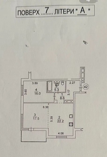 • Санвузол суміжний (ванна) 5,3 м кв