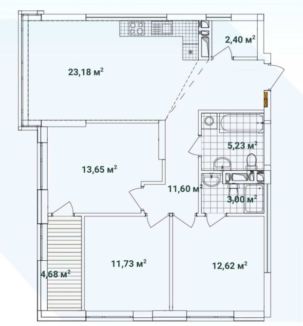 • Площадь кухни 23.18 м2