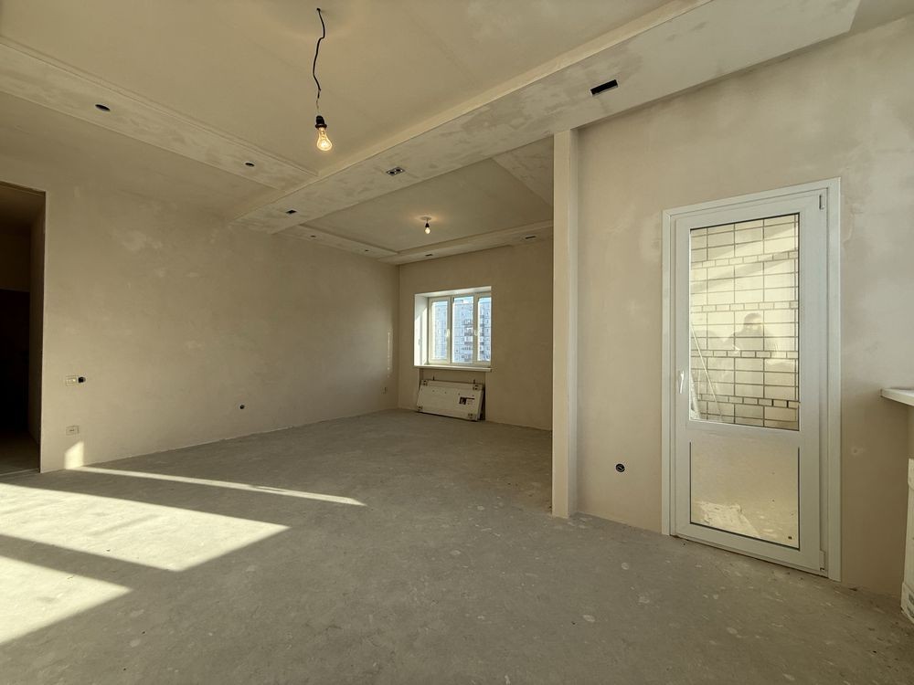 Стіни підготовлені під чистове оздоблення, стелі — гіпсокартон.