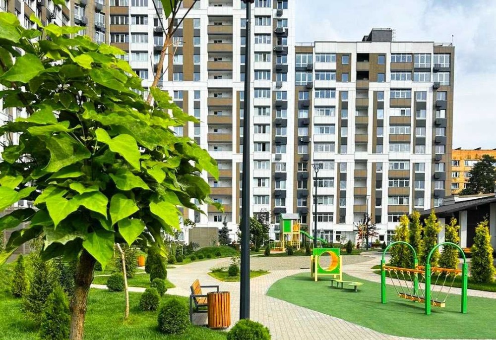 Територія комплексу знаходиться під охороною, має великий внутрішній двір без машин - 2.5га, тільки для мешканців комплексу. Також, має гостьовий та підземний паркінг , який використовується і як укриття.