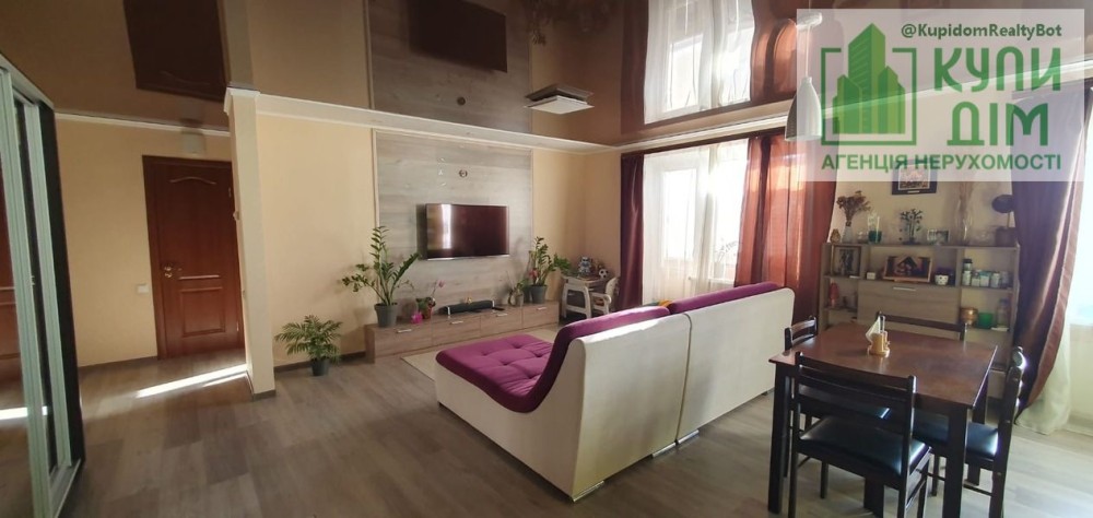 Продається 3-кімнатна квартира на Ковалівці студійного планування загальної площі - 65м.кв. (кухня-студія (40м.кв.), дві спальні (8,2м.кв. та 12,2м.кв.), суміщена ванна з туалетом (4м.кв.), балкон та лоджія). Капітальний ремонт зроблено у 2020 році. На підлозі устелений ламінат, у санвузлі – керамічна плитка. Нова сантехніка. По всій квартирі монтована німецька натяжна стеля (12 років гарантії). Вікна, балкон та лоджія метало-пластикові. По всій квартирі розведена нова електропроводка із вступним кабелем на 7кВт. Встановлено електроопалення, двозонний електролічильник та електропакетник із захисним стабілізатором напруги. Також встановлено лічильники на воду та на газ. У санвузлі встановлений накопичувальний 80-літровий бойлер і проточний водонагрівач з краном на кухні. На кухні вмонтовано прямоточний фільтр для питної води з окремим краном. Вбудоване кухонне обладнання (газова плита з електродуховою шафою та витяжкою). У квартиру заведені телевізійні кабелі (у двох кімнатах) та інтернет-кабель з WI-FI роутером. Квартира знаходиться на дев'ятому поверсі дев'ятиповерхового будинку ОСББ «Заможна оселя». Дах відремонтований, не протікає. Стіни утеплені 100-міліметровим пінопластом покритим декорованим захистом. Будинок розташований біля 20-ї школи. По-дворі знаходиться озеро та два дитячі садки. На тильній стороні будинку знаходяться магазини 'Файномаркет', 'Єва', 'Берлін', кафе 'Крила', через дорогу знаходиться 'АТБ-маркет' та безліч інших магазинів, включаючи ринок 'Босфор'. За 200 метрів від будинку розташований парк «Ковалевський», поряд театр та філармонія. Біля будинку зупинки зі зручною транспортною розв'язкою, 14-та школа, машинобудівний технікум та дитячий садок. Квартира продається з усіма меблями!