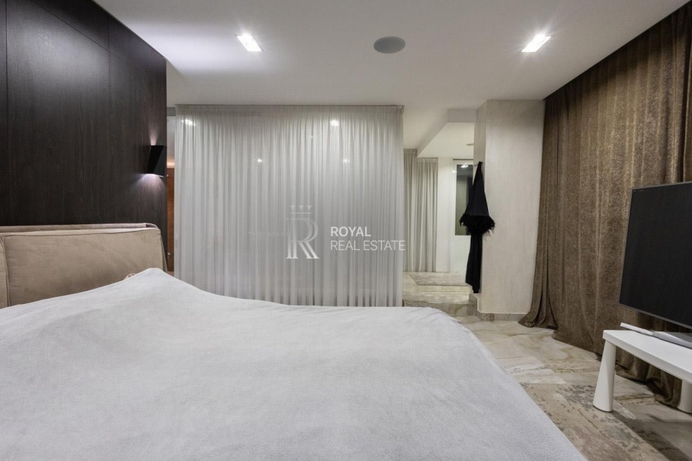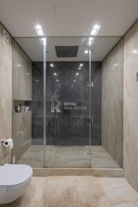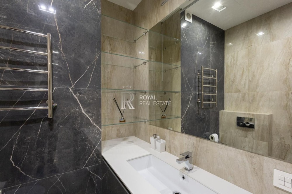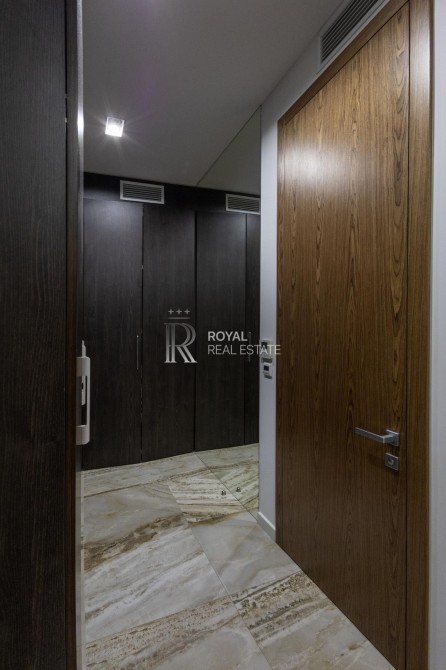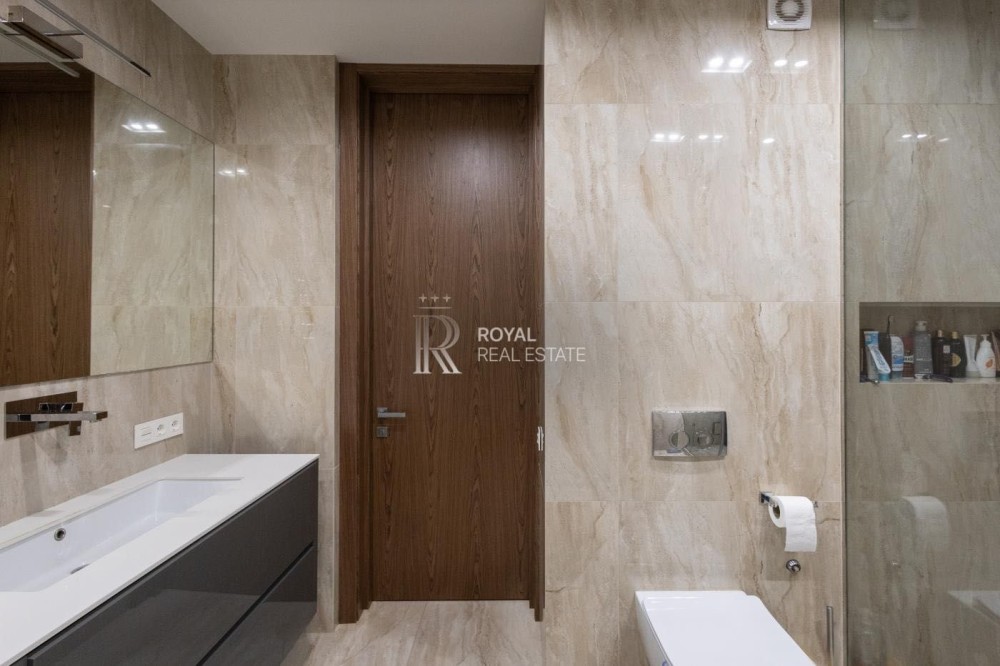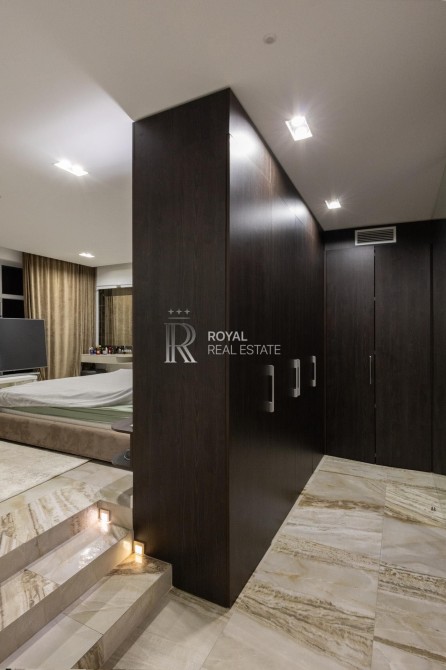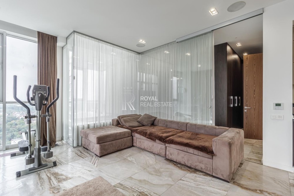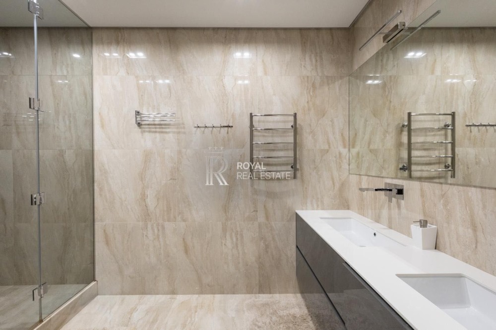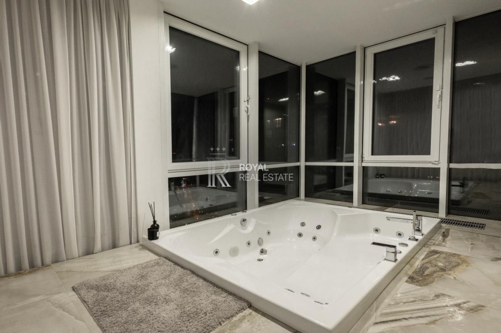 Загальна площа 120м.,кв., простора кухня-вітальня, майстер-спальня з гардеробною та санвузлом з душем та джакузі з панорамними вікнами, дитяча кімната, гостьовий санвузол, дві гардеробні, пральна кімната.