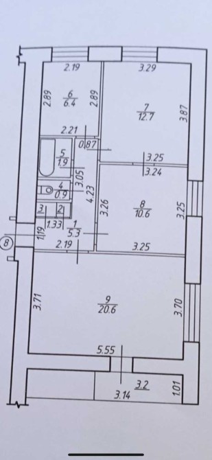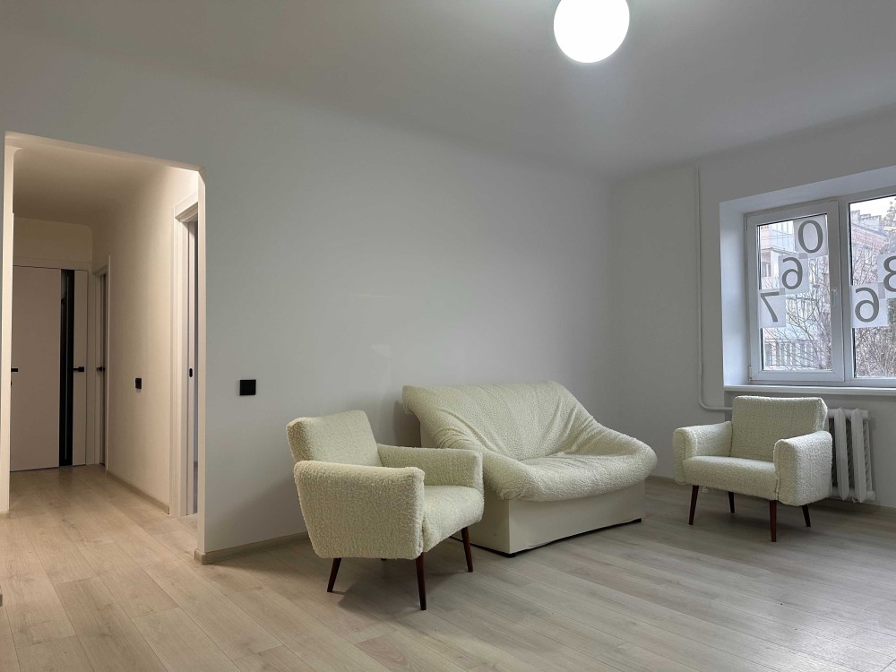 Площа: 61 м² (житлова — 45 м²: кімнати 20, 13 і 12 м²)
