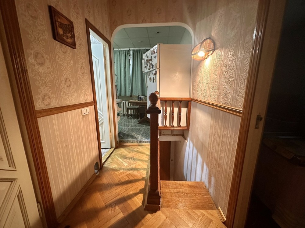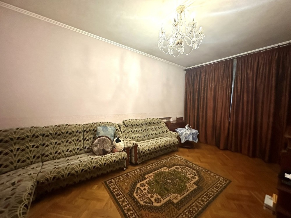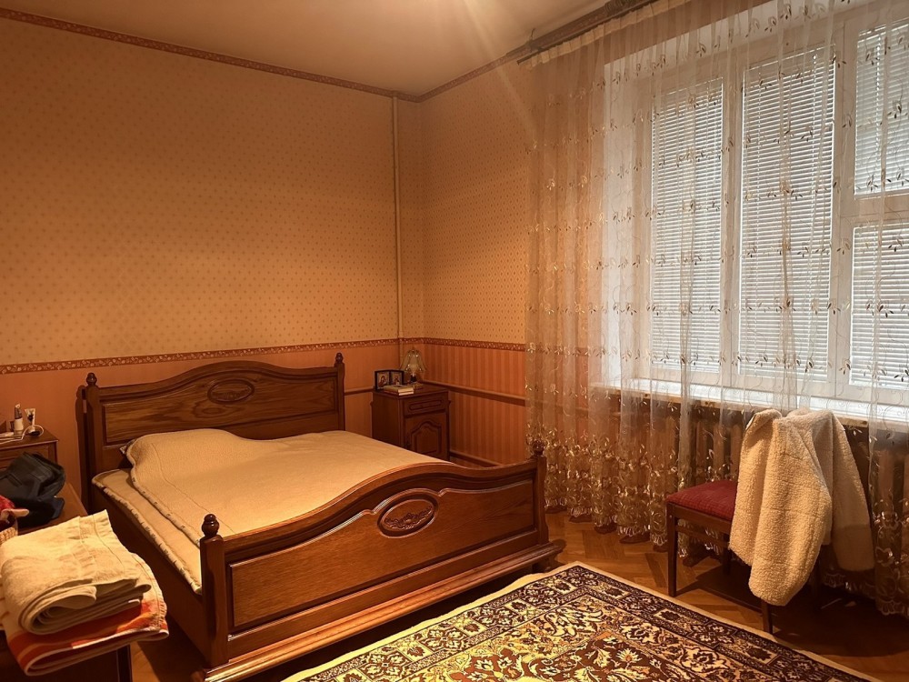 Трикімнатна квартира з бомбосховищем у сталінському будинку. Будинок та під'їзд у відмінному стані. Вікна виходять на три боки. У квартирі зроблено ремонт, високі стелі, три окремі кімнати, кухня та окремий санвузол. Частково замінено труби, замінено проводку, є газовий котел на обігрів води.