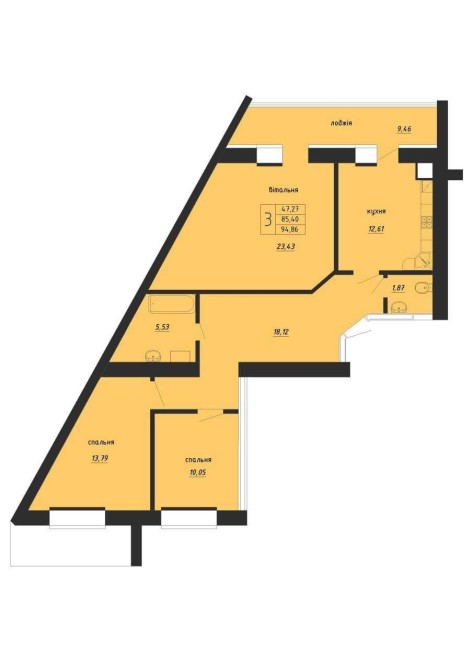 • Общая площадь 94.86 м2