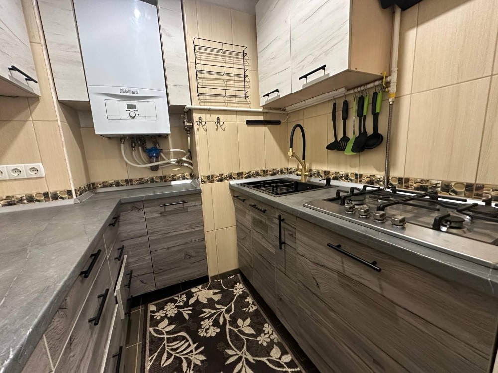 пластиковые окна, бойлер, металлическая входная дверь (красный декор), 15минут пешком до центра,есть рядом супермаркет,остановки с регулярным автобусами в разные стороны города, тихий район,рядом школа .