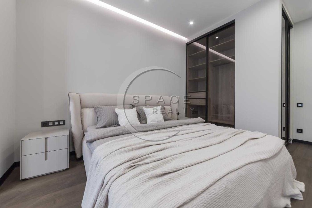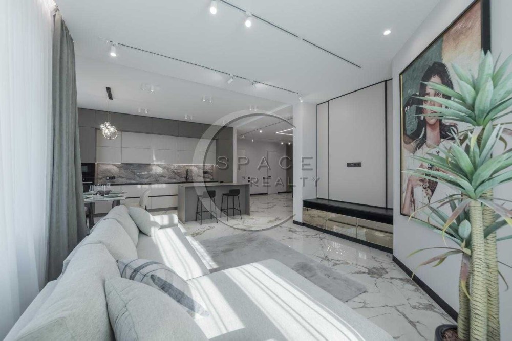 Інтер’єр виконаний у м’яких пастельних тонах з використанням італійських меблів та техніки світових брендів. Раціональне планування включає простору кухню-вітальню, дві затишні спальні, два санвузли, два великі гардероби.