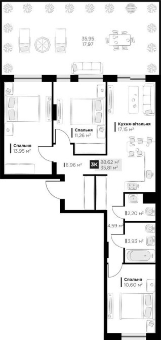 • Общая площадь 88.62 м2