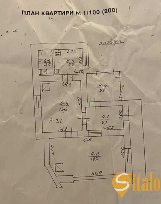 3 кімнати (одна з них переділена перегородкою, тому фактично є 4 приміщення).