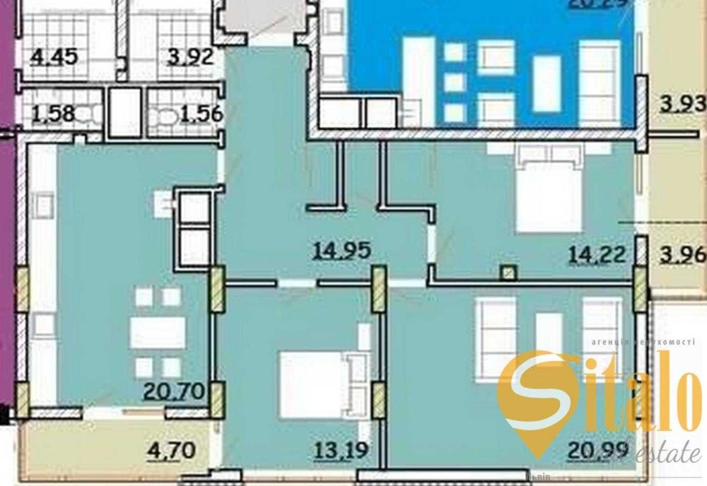 • Площадь кухни 20.7 м2
