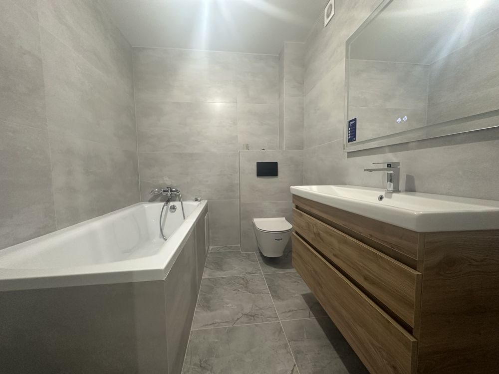 с/у -разом встановлена вся якісна сантехніка гардеробна , натяжні стелі, ламінат, плитка , на все лічильники.