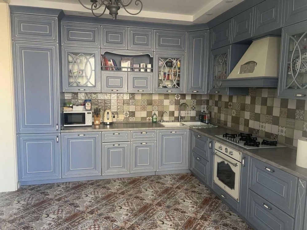 Загальна площа - 100 м2, житлова - 56 м2, кухня - 35 м2.