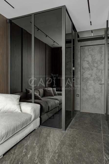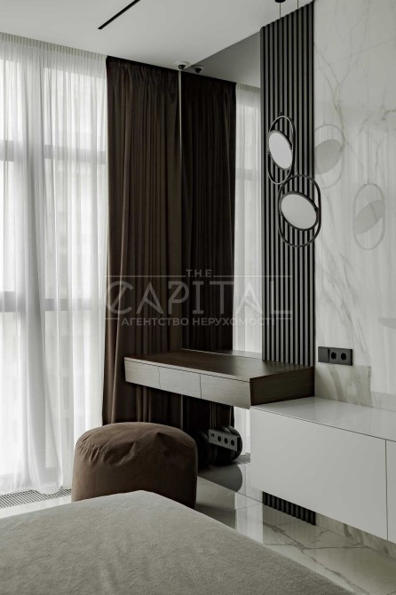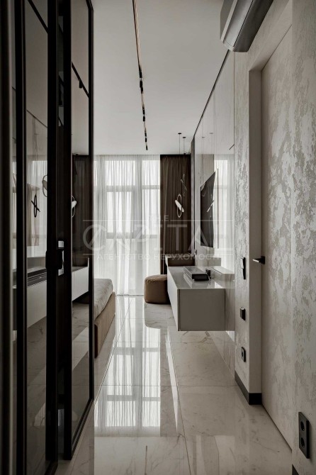 Дизайнерський ремонт виконано в сучасному, стриманому стилі з використанням якісних матеріалів і продуманим зонуванням простору.