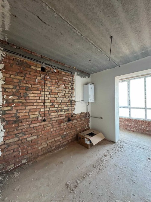 Квартира знаходиться в новому будинку, введеному в експлуатацію, і має стан від забудовника. Вже виконано розводку електрики, підведено воду, встановлено індивідуальний котел. На кожному рівні є санвузли. Усі необхідні комунікації під'єднані, ліфт працює - можна починати робити ремонт.