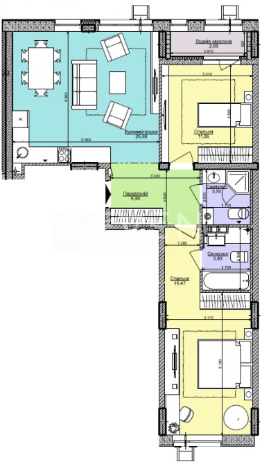 - кухня-вітальня 28 м2