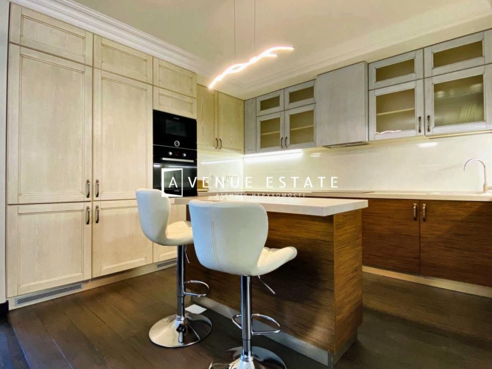 Голосіївський, 60. Загальна площа квартири - 114 м2, 21 поверх із 23. Дизайнерський ремонт високого рівня з використанням дорогих екологічно чистих матеріалів. Кухня-вітальня, 1 спальня, 1 дитяча з 2