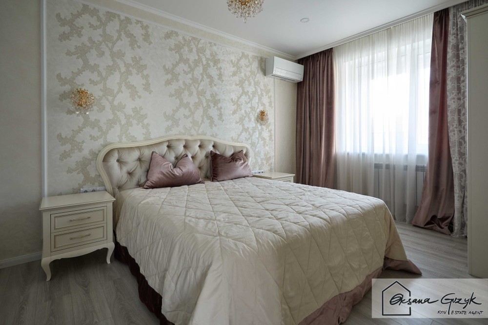 Вишуканість квартири продовжилася і у головній спальні і у дитячій, де все налаштовує на сон та спокій, а усі особисті речі можна розмістити у величезних шафах-купе.