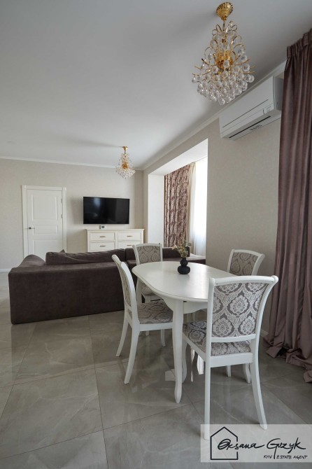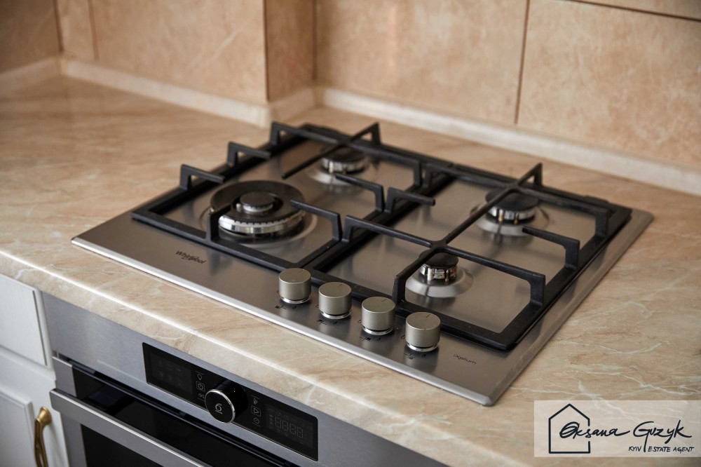 Кухня містить достатньо місць для зберігання і виглядає естетично завдяки якісно вмонтованим меблям та технікою бердових виробників. Позаду обіднього столу кухні, знаходиться простір у відпочинковій зоні, де є величезний і плюс до всього розкладний диван для релаксу, відпочинку та перегляду фільмів.