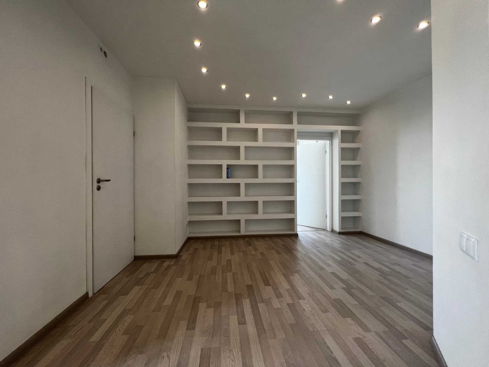 Нейтральний ремонт в світлих тонах. Стіни фарбовані в білий колір, підлога — світлий ламінат/кахель. Електричний підігрів підлоги у ванній, на кухні та на балконі (можливість запрограмувати підігрів за графіком).