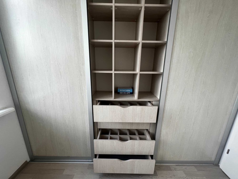 Кухня: всі шафи зроблені на замовлення, глянцеві фрезеровані фасади, фурнітура blum. Мийка з мармурової крихти, подрібнювач харчових відходів.