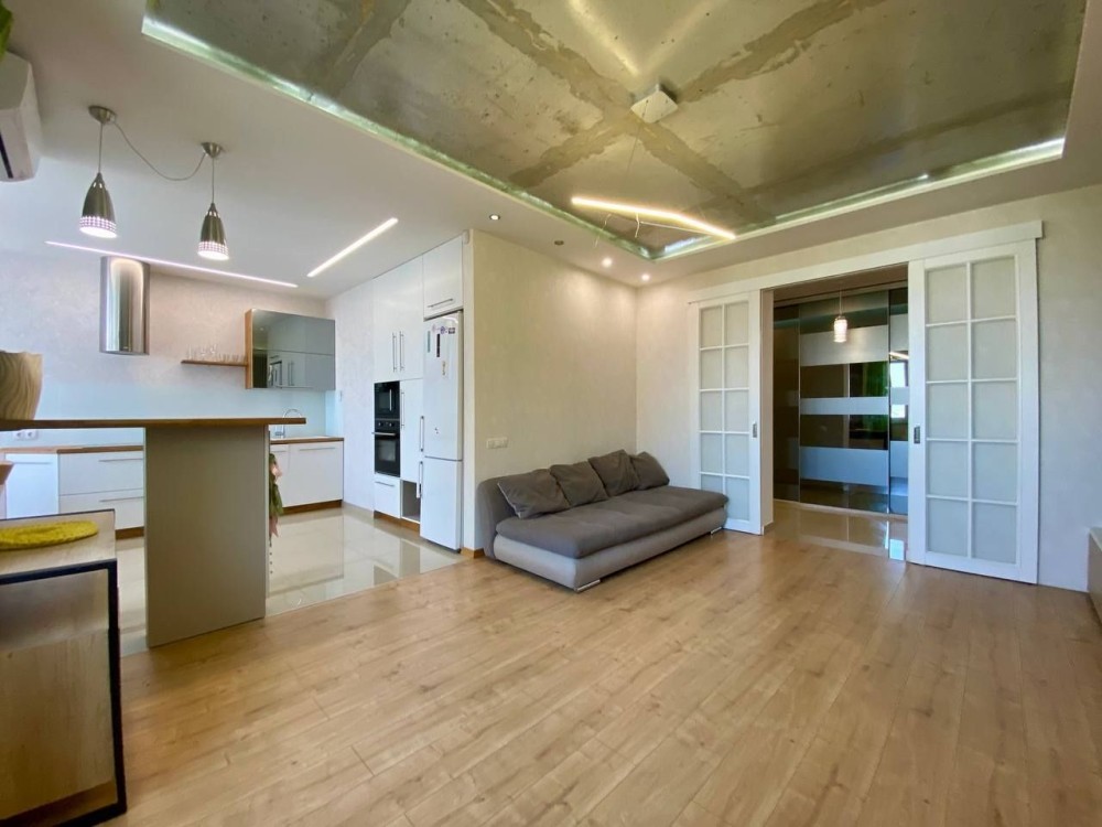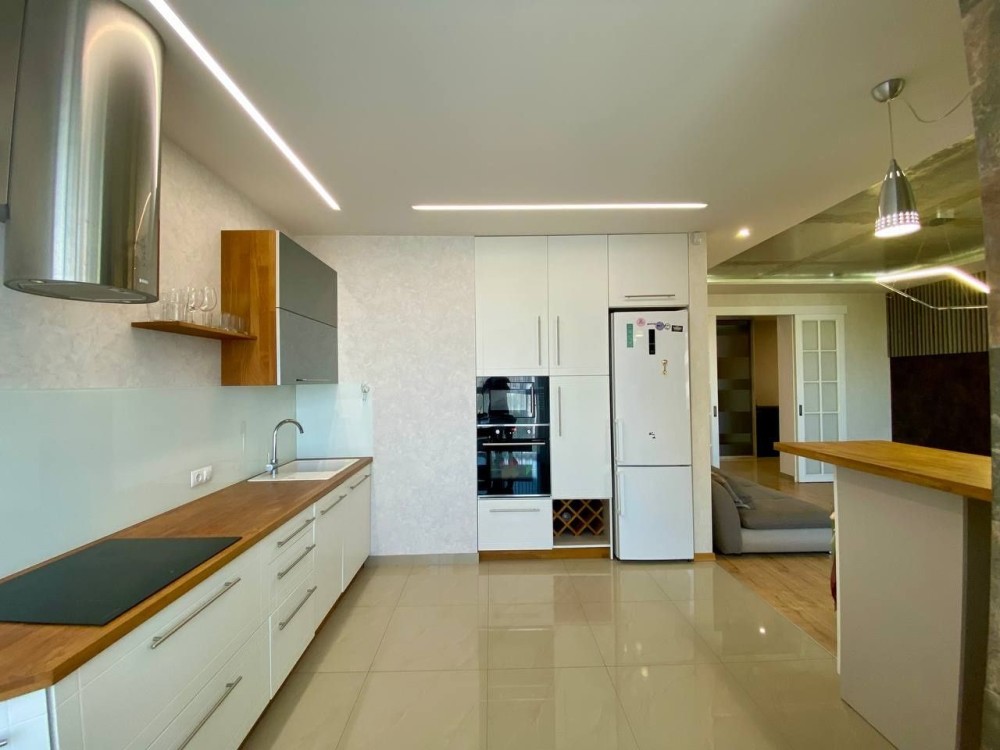 Техніка: духова шафа, варильна поверхня, мікрохвильова піч, посудомийка, холодильник, пральна машина, 2-кондиціонер (великий smart/invektor) бойлер на 100літрів.