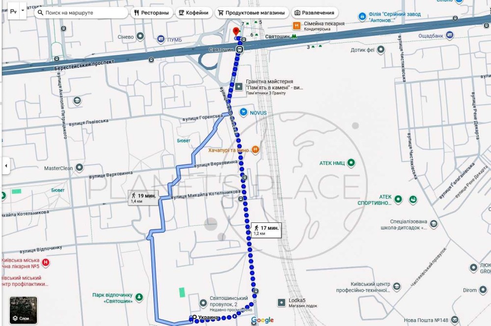 До станції метро «Святошин» 15 хвилин пішки, до супермаркету «Новус» та АТБ 10 хвилин пішки, елітна інтернаціональна школа від Американського посольства-під будинком.