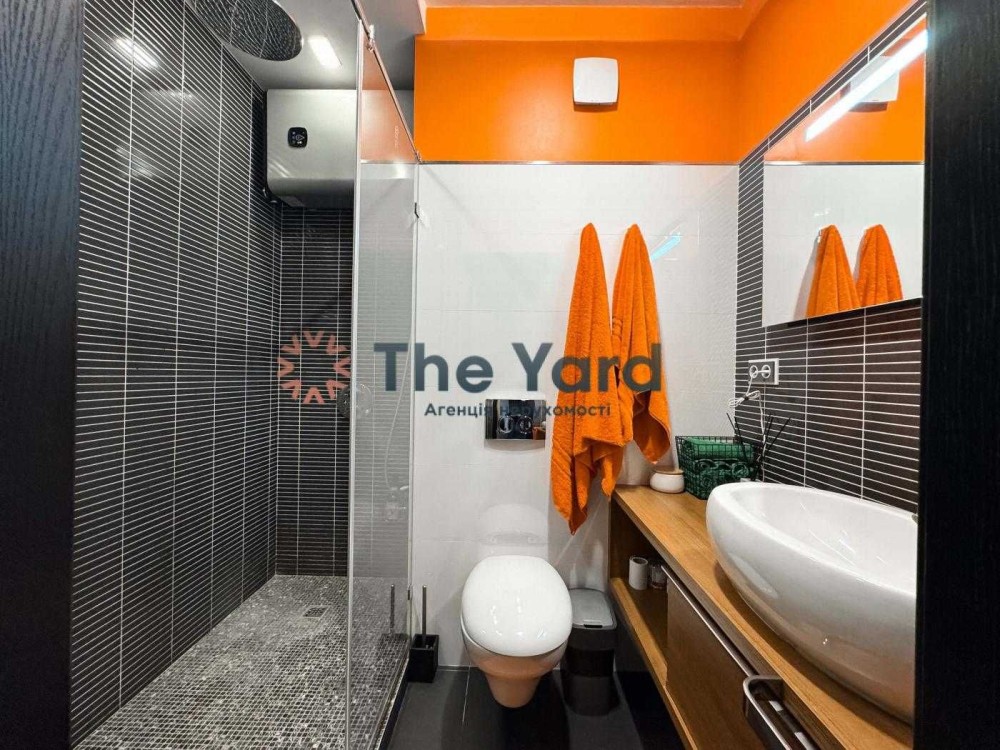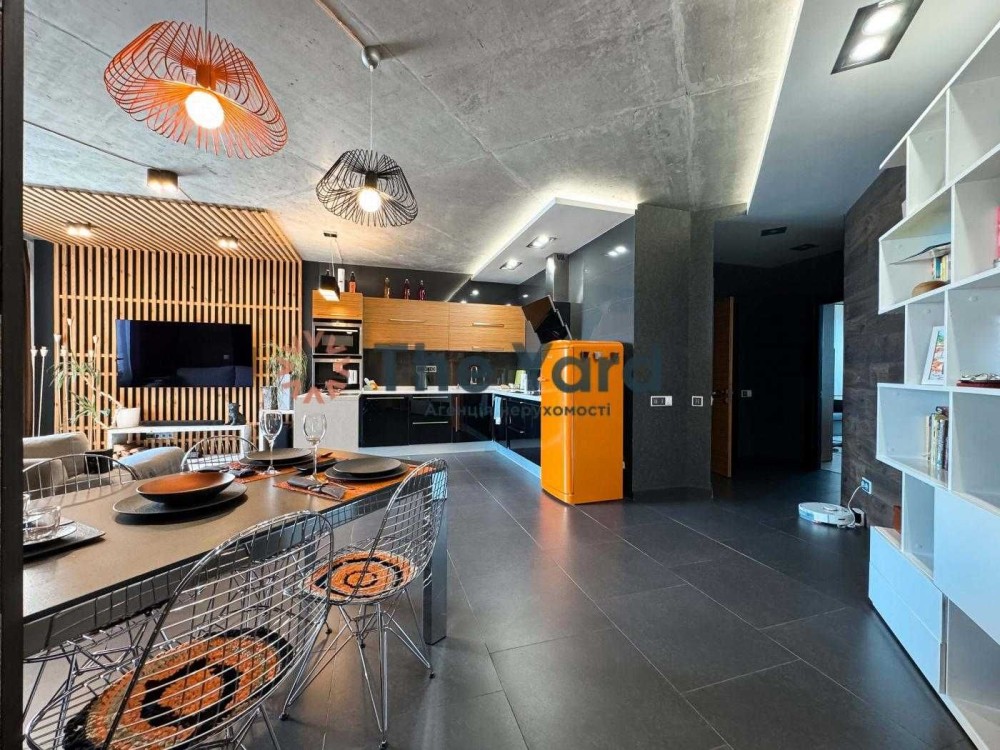 Квартира має роздільне планування: 2 спальні , простора кухня -вітальня , передпокій з двома санвузлами (гостьовий та хазяйський з душовою). Використано авторський проект дизайну з декоративною штукатуркою. Зроблений якісний дорогий ремонт зі стильним дизайном.