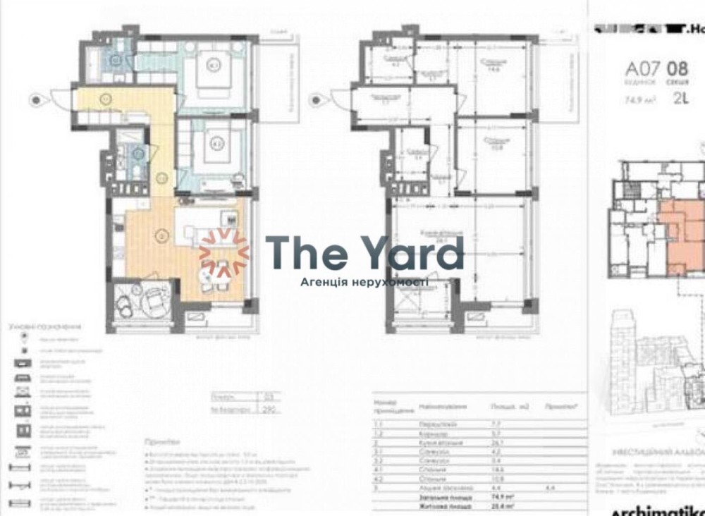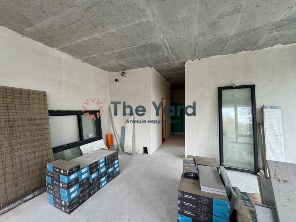 Роздільне планування: велика вітальня, дві затишні спальні, окрема кухня, два санвузли (можливість облаштування ванної кімнати та гостьового туалету). Є гардеробна або комора.
