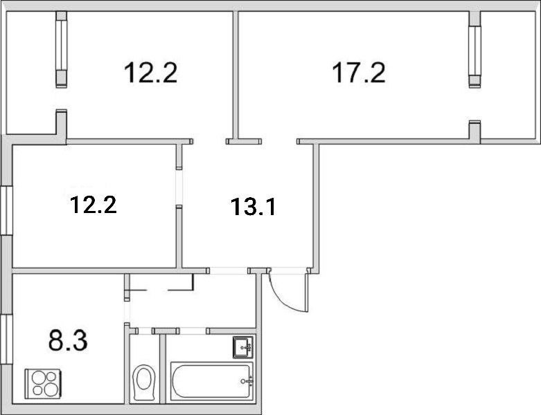 • Трехкомнатная