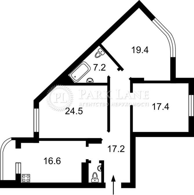 Три окремі спальні. Великий коридор. Велика кухня. Тамбур. Кладовка.