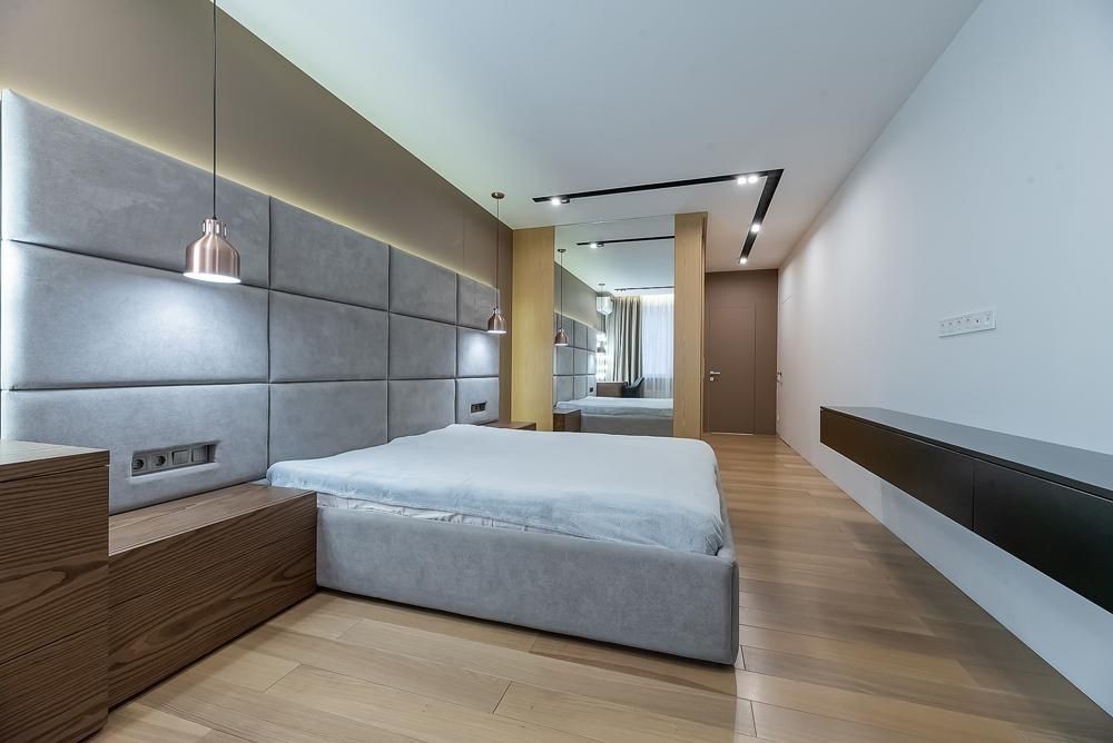 Квартира складається з великої кухні-студії, 2х окремих кімнат: спальні з власним с/в, дитячої кімнати, просторої гардеробноі кімнати та с/в, 2 балкони . Дизайн квартири розроблений з врахуванням кожної дрібниці, використовували дорогі матеріали та елементи , побутова техніка Bosch.