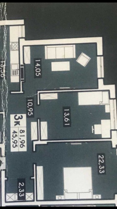 • Площадь кухни 14 м2