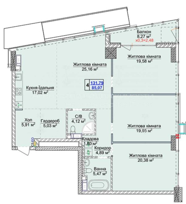 • Общая площадь 131.79 м2