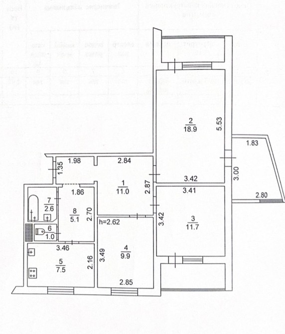 Загальна площа 73,5м2; житлова 40,5м2; кухня 9,9м2