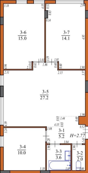 • Общая площадь 77.1 м2