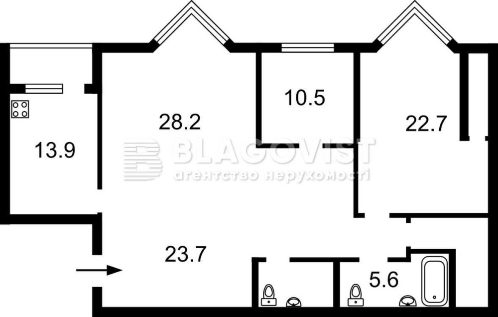 • Площадь кухни 13.9 м2