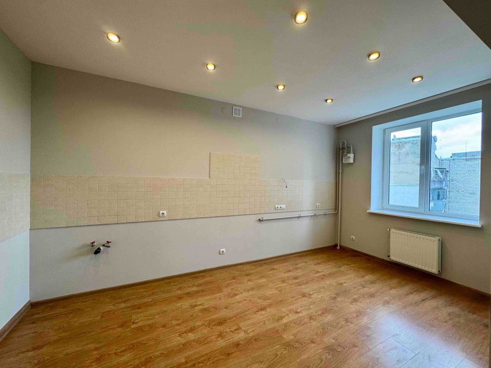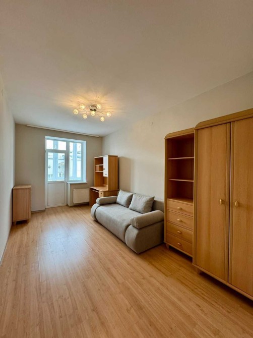 Дві ізольовані кімнати, велика вітальня з аркою у кухню, є простора лоджія.