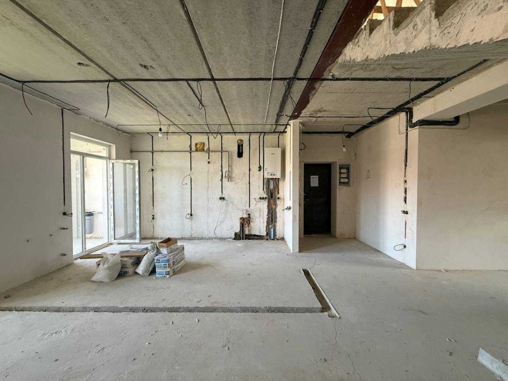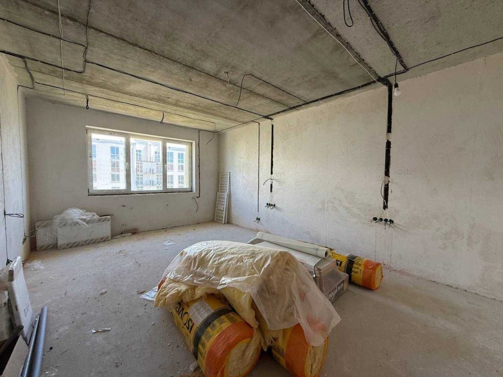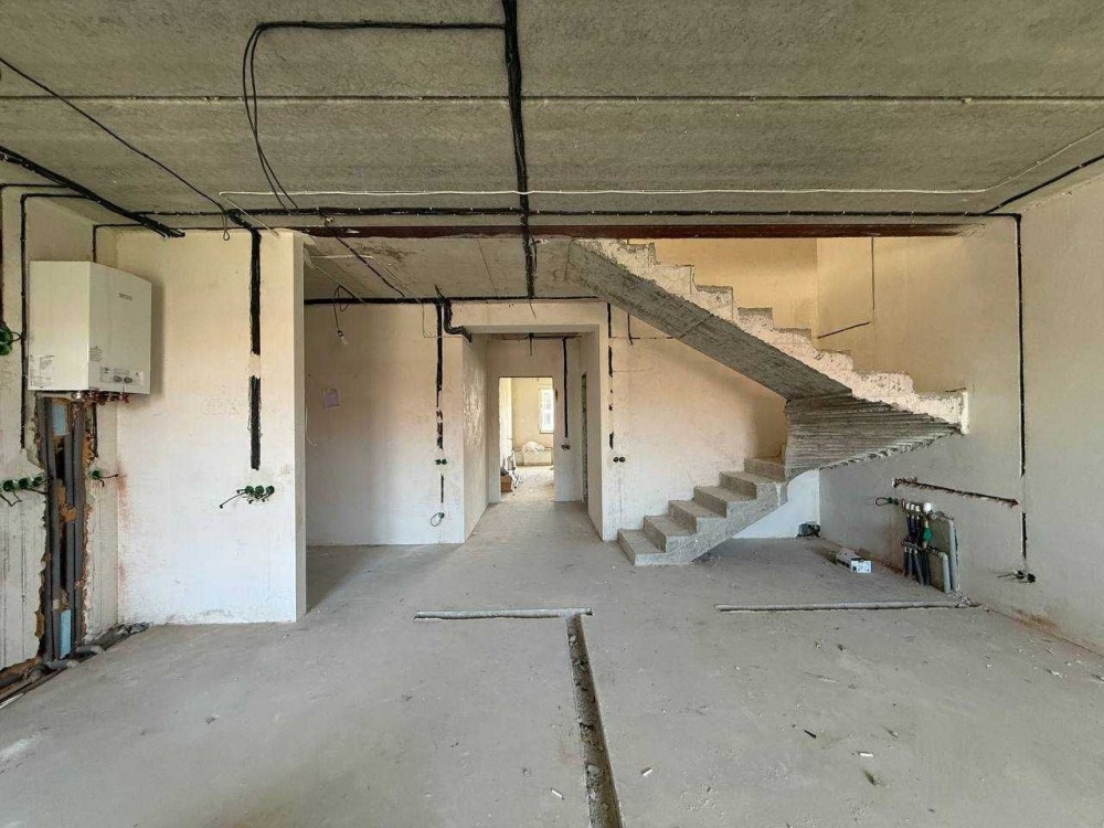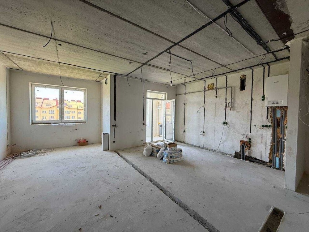 Стіни поштукатурені, стяжка, розведена електрика, підігрів підлоги в кухні, коридорі та санвузлах