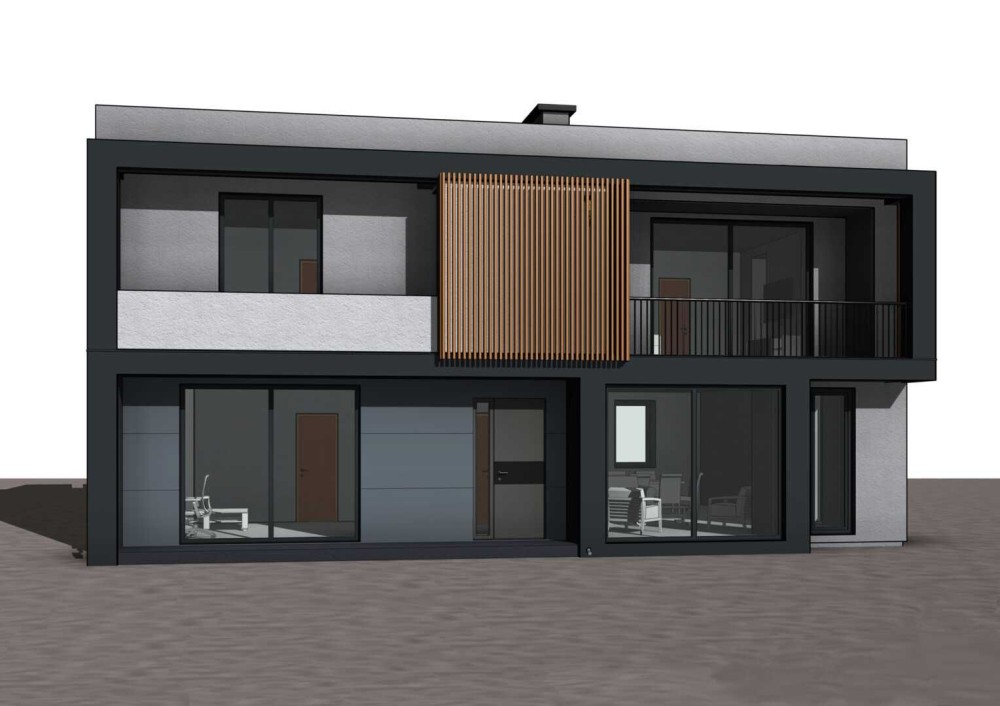 Проєкт цього будинку — справжній варіант класу люкс: простора вітальня стане серцем оселі, а одну з кімнат легко облаштувати під кабінет, дитячу чи гостьову. На другому поверсі заплановані великі спальні з балконами, гардеробна й кілька санвузлів, що дозволяє створити індивідуальний комфорт і відчуття елітного житла.