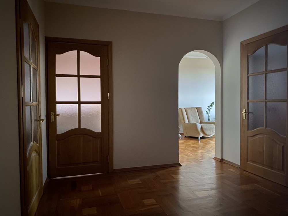 Загальна площа квартири-87м² , житлова - 55м² , кухня - 9м² . Вхідні двері броньовані з надійними замками . Великий хол . Кімнати роздільні :1) кімната -17.4м²; 2)12.4м² , 3)-12.4м²,4)-12,4м² . Квартира двустороння . Вікна - ( мтп) і виходять на подвір'я з дитячими майданчиках, бюветом , а з іншої сторони , на приватний сектор , ліс .