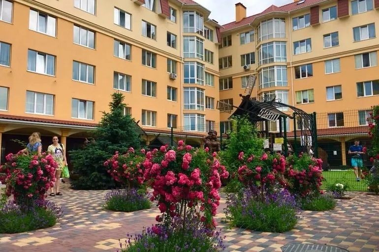 Квартира знаходиться у затишному ЖК Софіївської Борщагівки,територія під охороною,з великою кількістю дитячих майданчиків,магазинів,кавʼярень. Поруч супермаркети,ТЦ Sofia Mall,зупинка громадського транспорту.