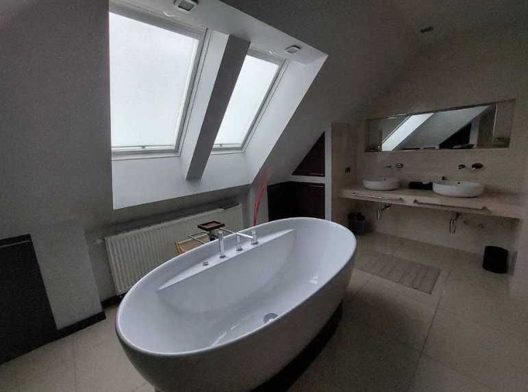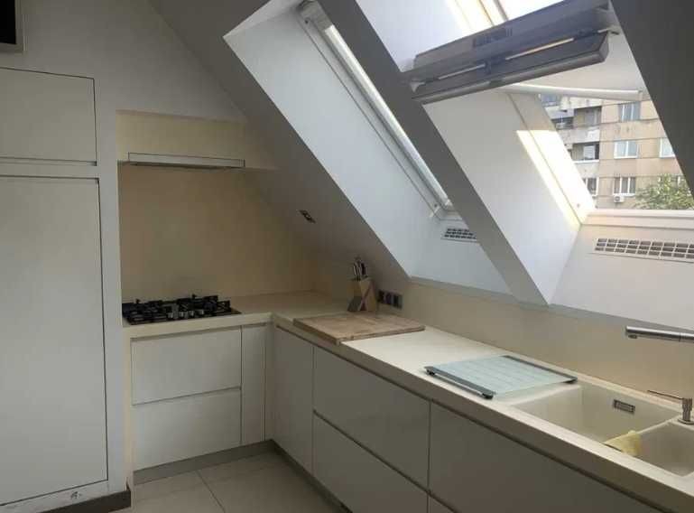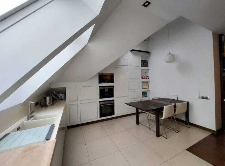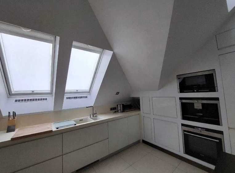 Повністю авторський проект. Кухня з білими глянцевими фасадами та з сучасною технікою "Siemens". Два санвузли, панорамні вікна, вихід на власну терасу. Додатково до квартири належить ще велике підвальне приміщення з ремонтом у стилі "LOFT".