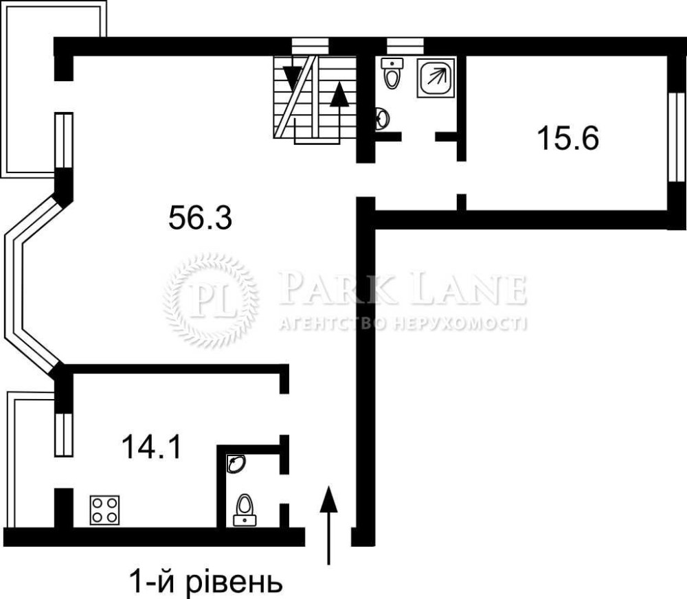 • Площадь кухни 14.1 м2