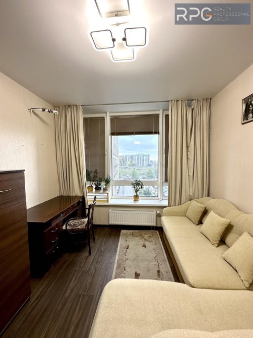 Київ, метро Позняки, Драгоманова 40е, 3-х кімнатна квартира. Драгоманова 40е, 24-й поверх, простора видова квартира 3-х кімнатна, з сучасним якісним ремонтом. Загальна площа 105.5, житлова 54.4. Комора, гардероб. Повністю укомплектована меблями. Вбудована кухня з необхідною побутовою технікою, натуральна столярка, німецький дубовий паркет, кахель з підігрівом, встановлені фільтри на воду, бойлери на кухні та в коморі, інверторні кондиціонери, нові ТV, велика лоджія з підігрівом, чудовий краєвид на місто. "Добробут", супермаркети, два ліцеї, "Спортлайф", поряд парк із озером та зоною відпочинку, до М "Позняки" - 10 хвилин пішки. Все лишається у квартирі. 044 200 10 80
